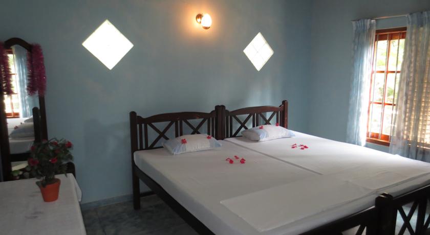 Последнее жилье в нашем списке — это частный отель, сделан из хозяйского дома с пристройкой. Достаточно качественное и интересное для рассмотрения. В нем есть разные варианты размещения как 2х местный номер без горячей воды, так и 3х местный номер на втором этаже со своей кухней. На всей территории отеля есть wi-fi. Расположен отель рядом с Хиккадувой, в курорте Додандува. До моря 5 минут пешком. Рядом с отелем находится 3 магазинчика и станция поезда, так что из Коломбо до Хиккадувы можно добраться на поезде, как это сделать я уже писала ранее. К этому отелю часто приходят группы обезьян. На деревьях видели сов. Зачастую у ворот отеля встречали варанов. Забронировать ноемр в отеле вы можете на этом сайте.